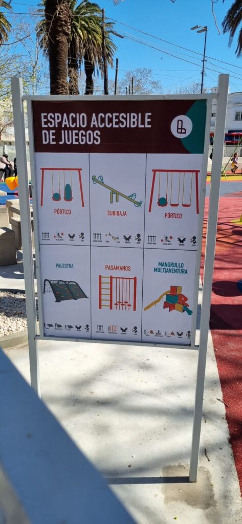 Uno de los aspectos más destacados del Programa Plazas 23 es la inclusión de pictogramas en las zonas de juego. Estos pictogramas no solo mejoran la comunicación y la comprensión de los espacios de juego, sino que también brindan un apoyo invaluable a los niños en el espectro autista. Los apoyos visuales son herramientas de comunicación tanto para la personas con desafíos en el desarrollo , como asi también para los adultos mayores con secuelas neurológicas en su lenguaje , y personas que no conocen nuestro idioma.