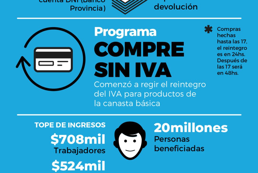 La medida del Gobierno nacional reintegra en concepto de IVA el 21% de las compras a determinadas personas según su nivel de ingresos, en comercios seleccionados y en productos particulares por hasta $18.800 por mes.