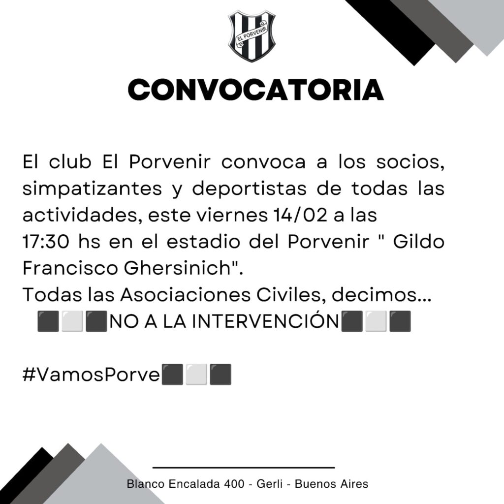 El 19 de diciembre de 2024, el intendente de Lanús, Julián Álvarez, presentó una denuncia ante la Dirección Provincial de Personas Jurídicas (DPPJ) solicitando la intervención del Club El Porvenir. Según Álvarez, la medida estaba respaldada por una serie de irregularidades denunciadas por vecinos, hinchas y socios del club, entre ellas: