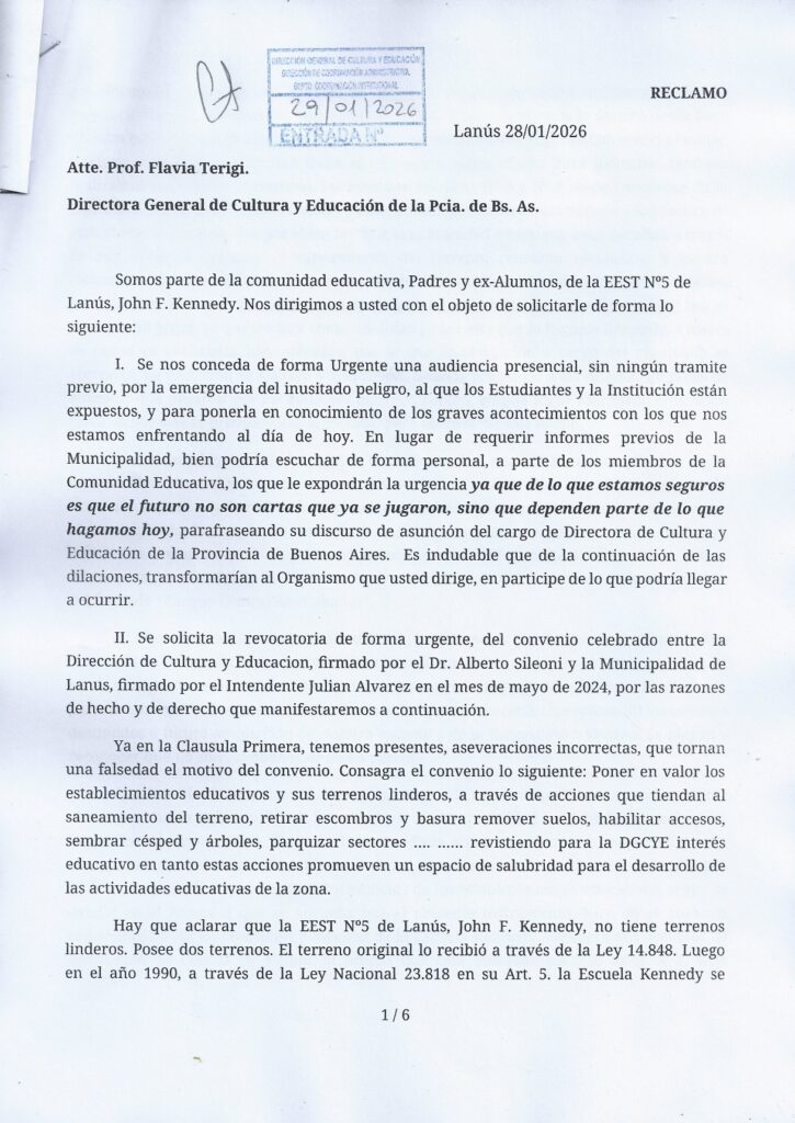 La actual Directora General de Cultura y Educación, Flavia Terigi, enfrenta un reclamo que ya no admite dilaciones. Tras los pedidos de audiencia del 9 y 29 de enero de 2026, la respuesta provincial se ha limitado a derivar la responsabilidad al Municipio de Lanús.